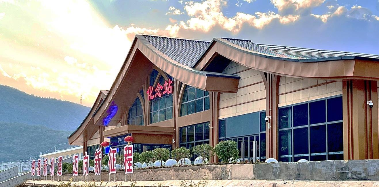 2.化念站位于玉溪市峨山縣化念鎮東北側,距鎮中心約3.0公里?;钫緸榫€側下式站房,總建筑面積1500平方米,地上1層,最高聚集人數300人。旅客乘降站臺2座、到發線3條。設有重點旅客候車區。采用驗檢合一、進出站合一的進出站檢票模式。