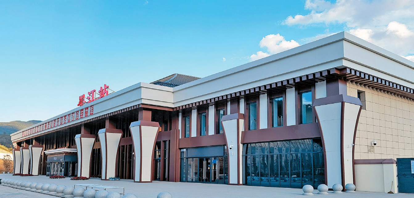 3.元江站位于云南省元江哈尼族彝族傣族自治縣甘莊街道,距離縣城區約14公里。元江站站房為線側下式站房,主體建筑面積2979平方米,地上1層,最高聚集人數600人。旅客乘降站臺2座、到發線3條。采用驗檢合一的進站檢票模式。設有母嬰候車室及重點旅客候車區。