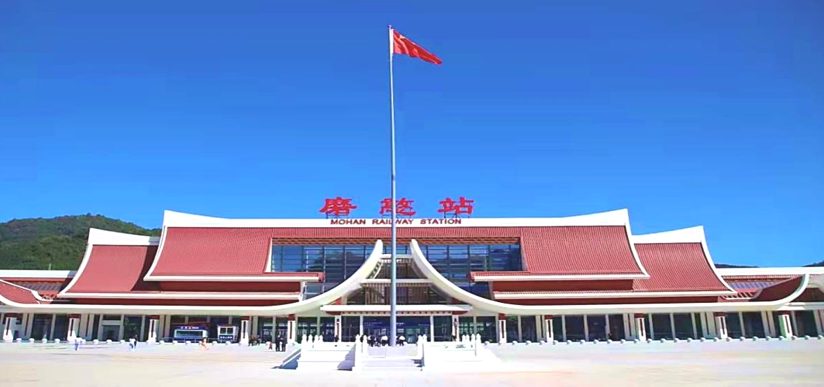 4.墨江站位于云南省墨江哈尼族自治縣聯珠鎮癸能村,距離縣城區約8公里。墨江站為側平式站房,主體建筑面積4990平方米,地上1層(兩側夾層),地下局部1層,最高聚集人數600人。旅客乘降站臺2座、到發線3條。采用驗檢合一的進站檢票模式,設商務候車室、母嬰候車室及重點旅客候車區。